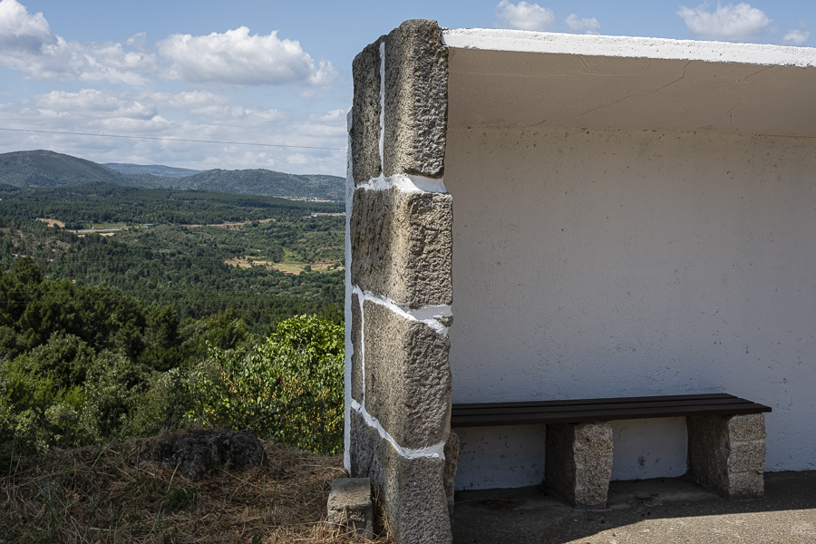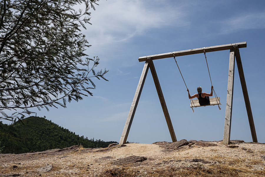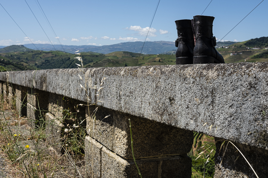 Vamos parando, quando há algo que nos chama. Uma beleza natural, umas botas que observam a paisagem, um santo, um baloiço…