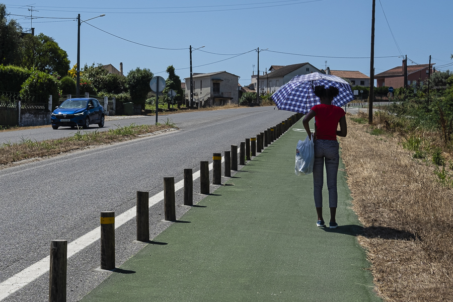 Toda a estrada nos tem mostrado isso, que existe um outro tempo, mais demorado. O dos ciclistas que se cruzam connosco; da rapariga que respira elegância ao seguir de guarda-chuva a fazer-lhe sombra; ou do velhote que leva o balde de comida para os animais. Todos têm um tempo diferente. Parece maior, quase gigante. Apetece-nos segurá-lo dentro de nós e só o usar quando estritamente necessário.