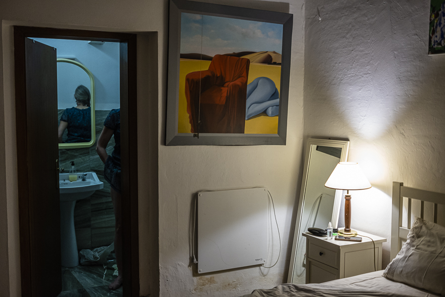 O anfitrião faz-nos uma visita guiada pela casa. Tem muitos quadros nas paredes, talvez alguns pintados pelo próprio, que seguimos até ao terraço, onde se pode ver toda a vila. Conta-nos que, em tempos, tudo era seco o que agora verdeja um pouco, devido à barragem do Alqueva. Aconselha-nos aquele terraço para o final do dia, que cumprimos religiosamente à noite.