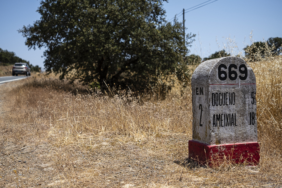 Estão quase quarenta graus quando entramos no Alentejo. Podíamos desistir agora e deixarmos o resto da viagem para uma meia estação mais fresca. Mas já estamos no meio e já só falta a outra metade. Decidimos, então, continuar em frente para as planícies.